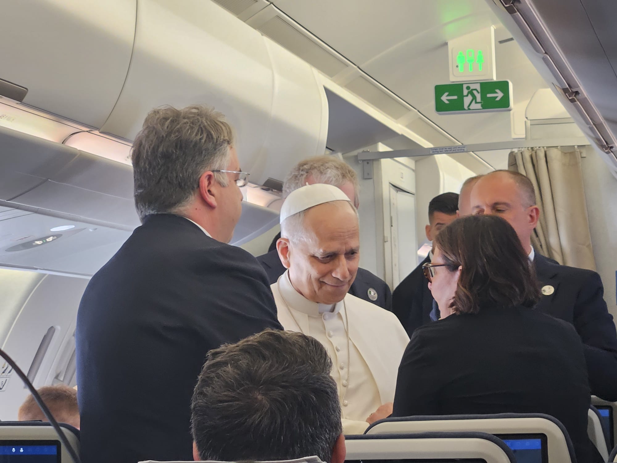 “Welcome, everyone. I am happy to greet you,” the pope said. “Have a good trip, and thank you for the service you offer to all the people.”